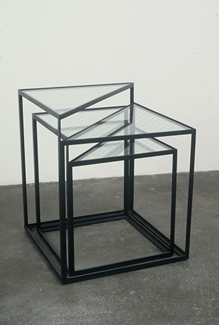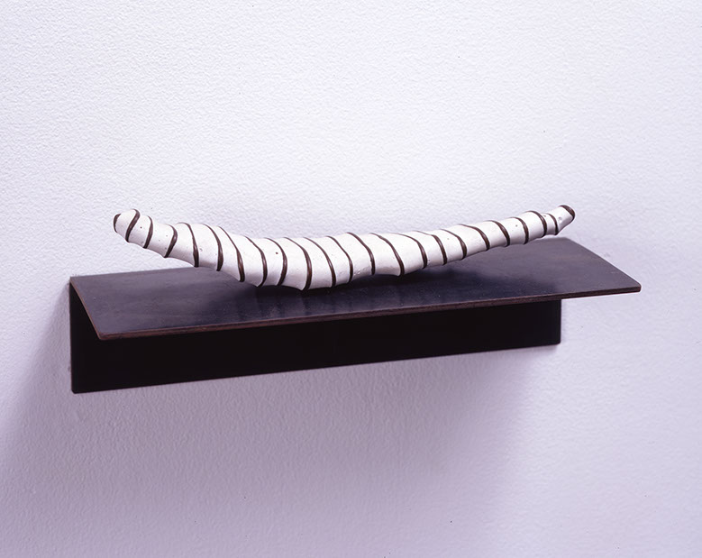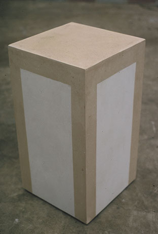 Solid white plaster is encased within the steel frame. Over time, the plaster edges against the steel will gradually acquire a light pigment of rust as would a vessel at sea.