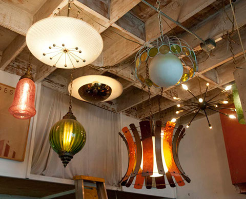 Lighting as art has been an ongoing interest for James. He assembled a fine collection of original "coffee shop" light fixtures for his studio. This protects the pieces for their historic values and provides contrast to his line of modern floor and table lamps.